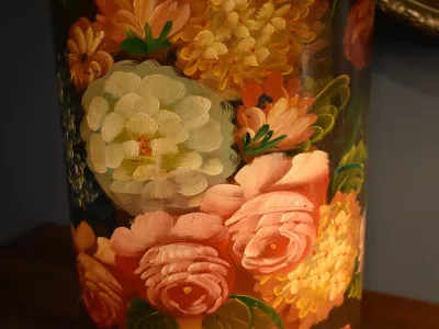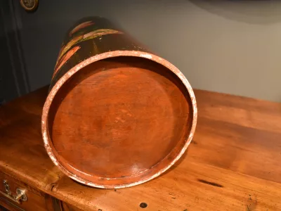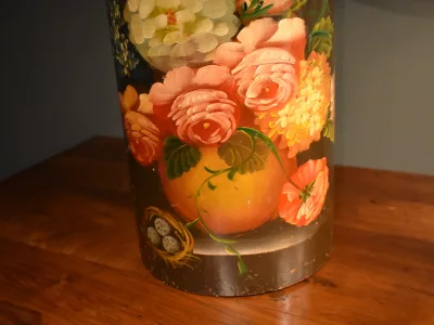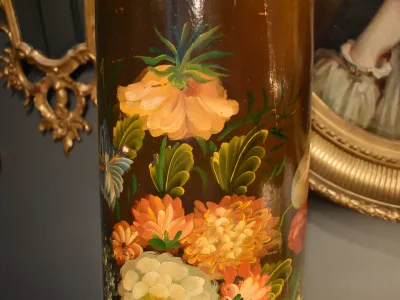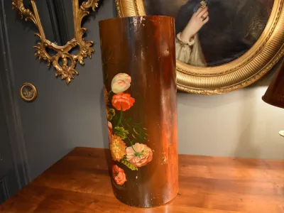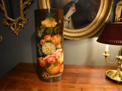 Porte parapluies ou porte cannes de forme cylindrique en bois peint à décor de fleurs. Bon état avec marques d'usage. Envoi possible. Chaque demande de renseignements par mail fera l'objet d'une réponse, merci de contrôler les messages indésirables.