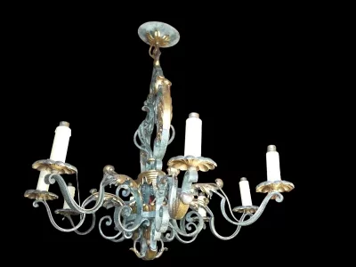 Comprenant 1 lustre à 8 lumières (H.94 cm / L.112 cm / l.83 cm ) , 1 lampadaire à 3 lumières( H. 195 c m avec abat jour H. 165 cm sans ) ,1 applique ( H. 43 cm / L. 44 cm / P. 23 cm ) .