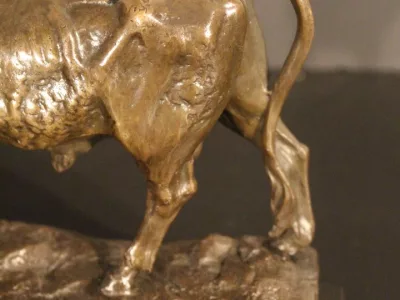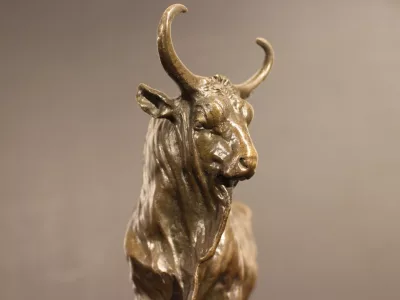 Lionne et autruche en bronze