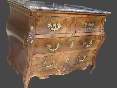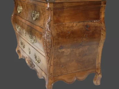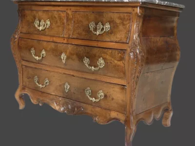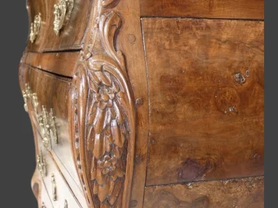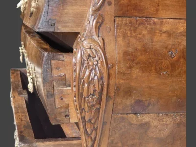 Commode Napolitaine sauteuse marquetée , époque 1ère moitié du 18 ème siècle Italie