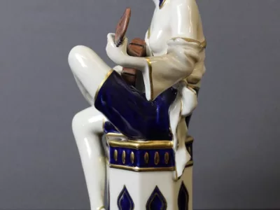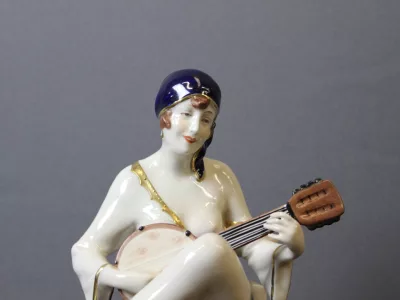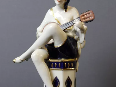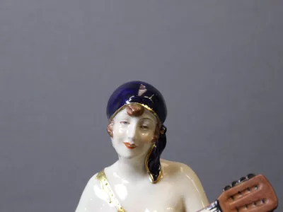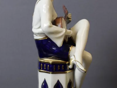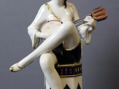• Joueuse De Mandoline d'époque Art Déco En Porcelaine Par Royal Dux