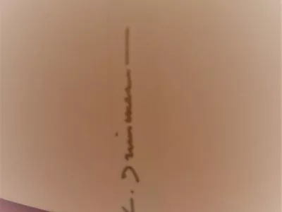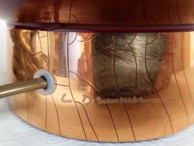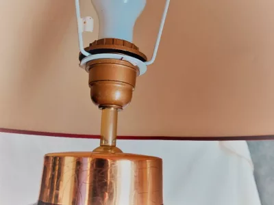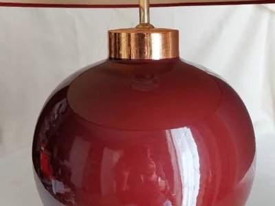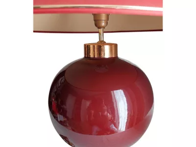 Lampada rossa e oro con paralume, di L. DRUMMER, circa 1950/1970.