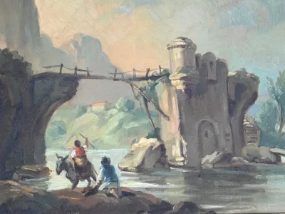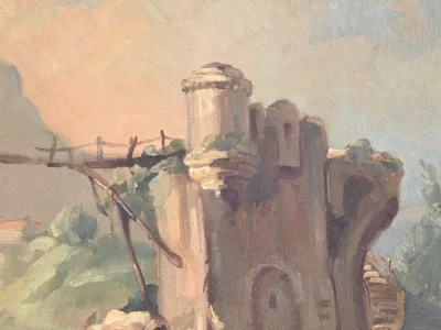 Fine Ottocento, stile Luigi XVI, trumeau con grande specchiera e dipinto olio su tela. Condizioni eccellenti. Contattaci per la consegna. Riferimento: 150923.2