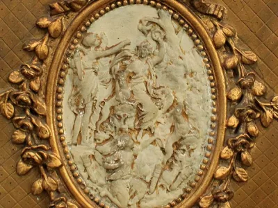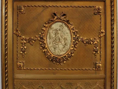 Grande specchiera trumeau in stile Luigi XVI con bassorilievo in albaster. Circa 1900. Condizioni perfette. Contattaci per la consegna. Riferimento: 290521