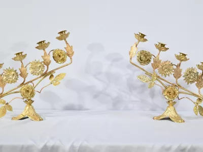 Coppia di candelabri da altare in ottone, 1920 circa. Ottime condizioni. Contattaci per la consegna. Riferimento: 300623.3