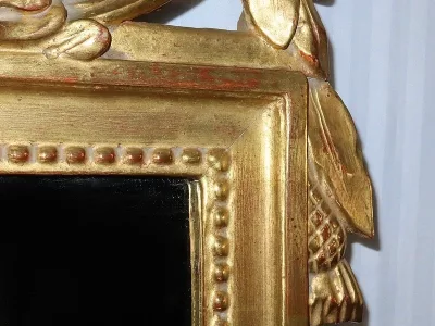 Incantevole specchiera in stile Luigi XVI dei primi del Novecento con cornice in foglia oro. Specchio retromercurio. Condizioni eccellenti. Contattaci per la consegna. Riferimento: 700U
