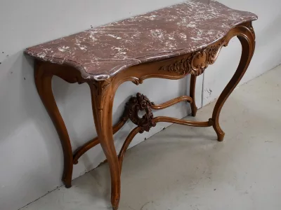 Metà del XIX secolo, stile Luigi XV, consolle in noce con piano in marmo. Restaurato nel nostro laboratorio e in perfette condizioni con una semplice finitura a cera. Contattaci per la consegna. Riferimento 796 R