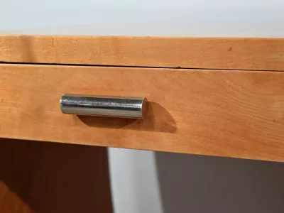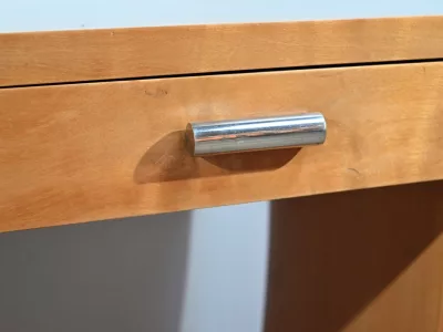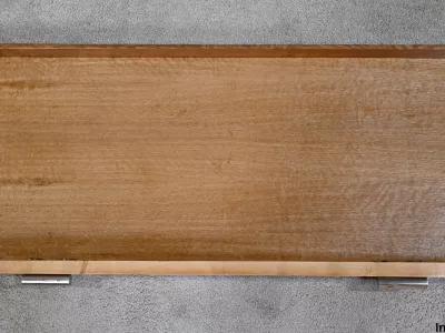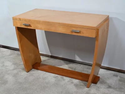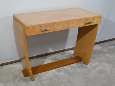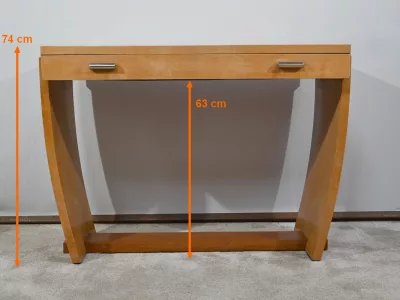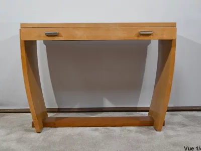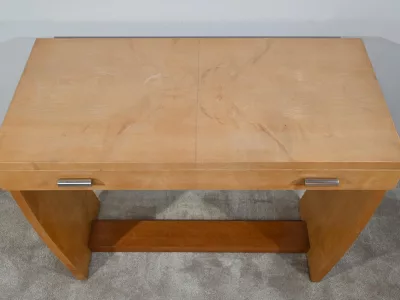 Consolle d'epoca Art Déco in sicomoro con cassetto fregio con maniglie cromate. Circa 1940. Ottime condizioni. Contattaci per la consegna. Riferimento: 818 U.