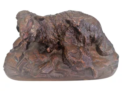Pecora in bronzo con il suo agnello, firmata Buci. Fine del XIX secolo.