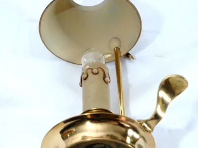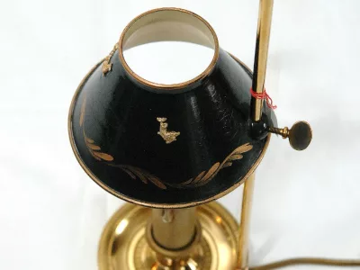 Piccola lampada "bouillotte" stile Impero in metallo verde con decoro dorato.
