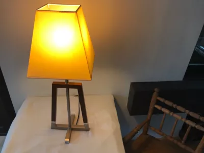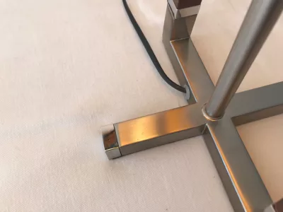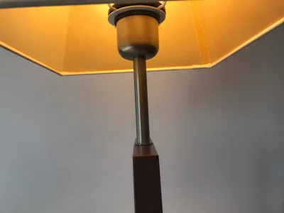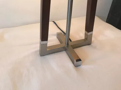 Lampada in stile scandinavo degli anni Sessanta in cromo e faggio. Buone condizioni generali, un piccolo graffio.