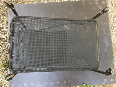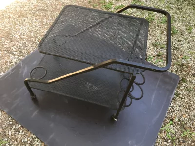 Tavolo trolley nero nello stile di Mathieu MATEGOT. Alcune scheggiature nella vernice e macchie di ruggine in alcuni punti.