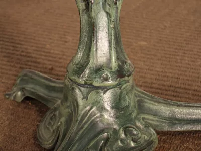 Tavolo d'epoca in stile Art Nouveau di Hector Guimard. Base in ghisa con piano in arenaria protetto da vetro e cornice in ottone nichelato.
