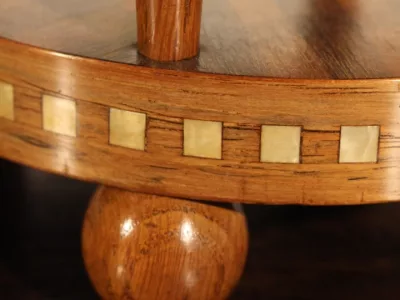 Raro tavolino di rappresentanza Art Déco, copia identica al modello proposto per il soggiorno in palissandro e noce con intarsi in madreperla.