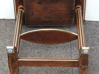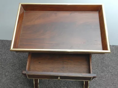 Tavolo "tricoteuse" del XIX secolo in mogano e impiallacciatura in mogano con cassetto fregiato.