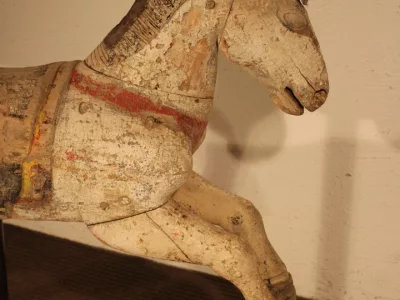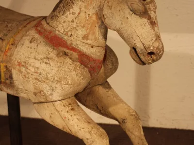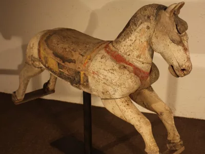 Cavallo da giostra del XIX secolo, in legno dipinto originale. Ottime condizioni.