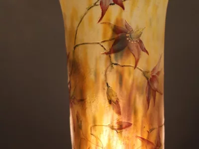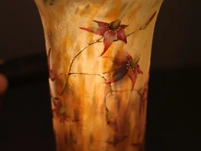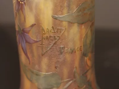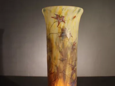 Vaso Daum in pasta di vetro smaltata e acidata. Firmato Daum con la croce di Lorena. Condizioni eccellenti.