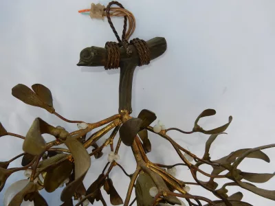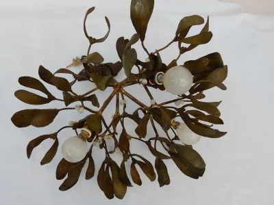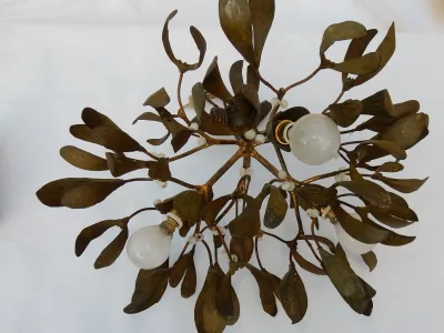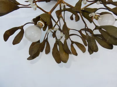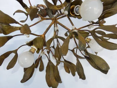 1900′ Mistletoe Ball Chandelier in Bronze Art Nouveau with 3 Lamps 40 x 45 cm Tulip-Shaped Sockets