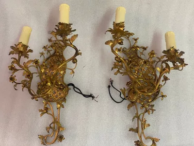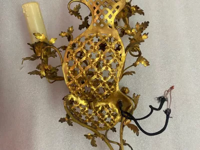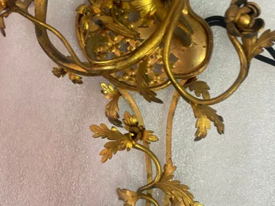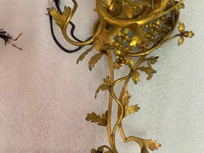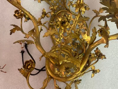 1880/1900' Gilded Bronze Cage Chandelier with 10 Arms and 21 Lights.