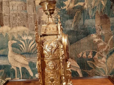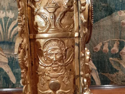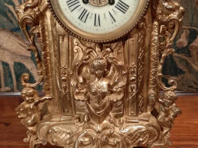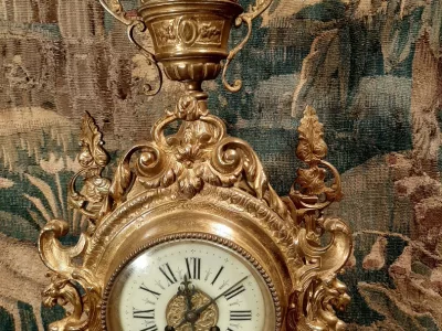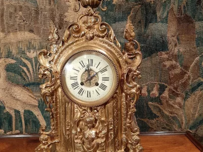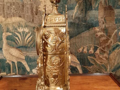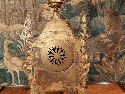 ブロンズ製の大きなゴシック様式の時計。良好な状態:ムーブメントの修正が必要で、振り子がない。