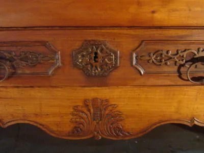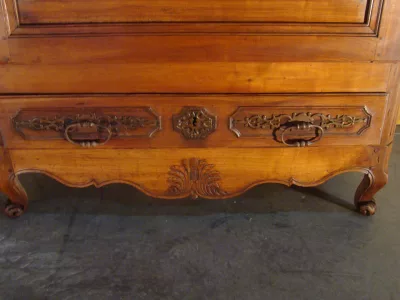 ルイ15世時代の細かく刻まれたチェリーウッドの「ボンネティエールバセット」食器棚。フランスでの無料配送。
