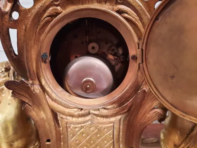 19 世紀、ルイ 15 世風の金銅製時計。ムーブメントは正常に動作しますが、修正されていません。全体的な状態は良好ですが、金メッキに若干の摩耗があります。