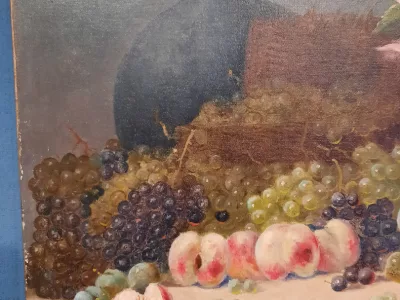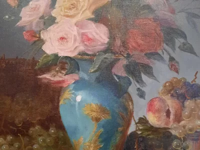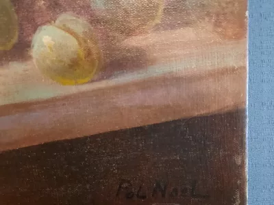 キャンバスに油絵の静物画、ポル ノエルの署名入り。 19世紀後半、フランスの学校。レストア、再取り付け済みで非常に良い状態です。