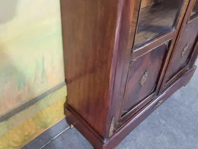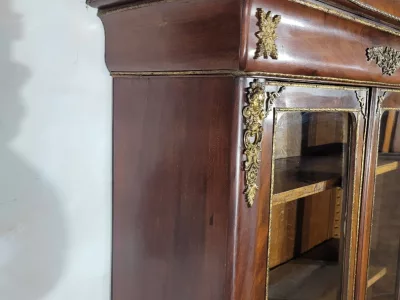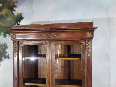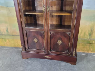 ナポレオン3世時代の小型本棚。マホガニー材にブロンズ装飾が施されています。棚板は可動式です。配送についてはお問い合わせください。