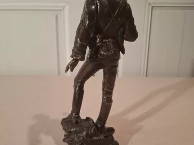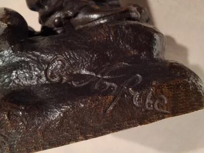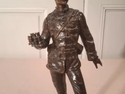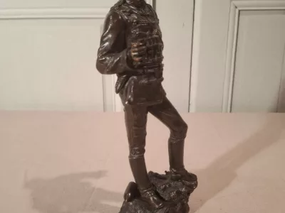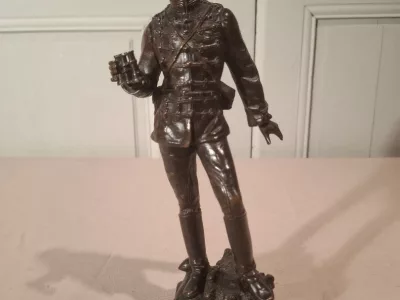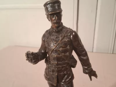 19世紀のブロンズ製兵士像。C. ANFRIE(1833年生まれ)の署名があり、「Sur la Breche」と題されています。状態は非常に良好です。