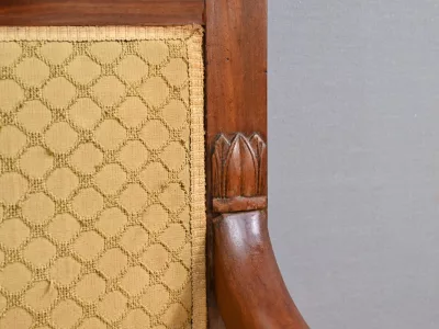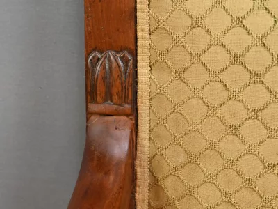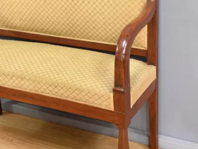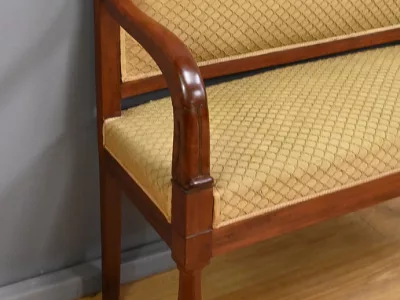 Restauratiebank in mahoniehout en textiel. Uitstekende staat. Neem contact met ons op voor levering. Referentie: 340 V