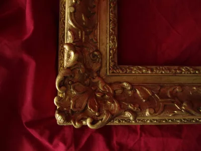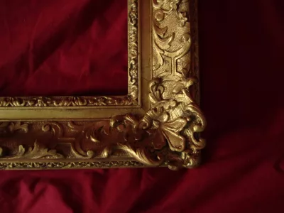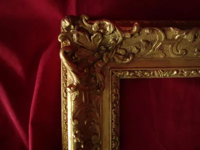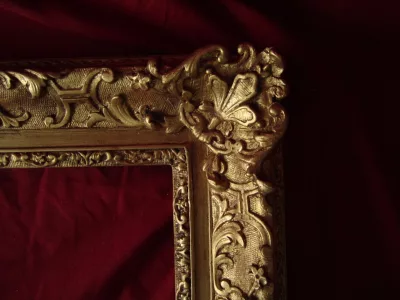 Zeer aantrekkelijk 19e-C-frame in stucwerk en verguld hout, kopie van een 17 C Louis XIV-periode met Berain-decoratie. Buitenkant: 39 x 47 cm Interieur: 28 x 20 cm Uitzicht: 31 x 23 cm. Heel goede staat