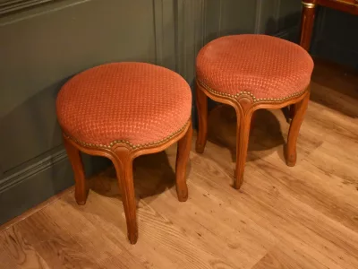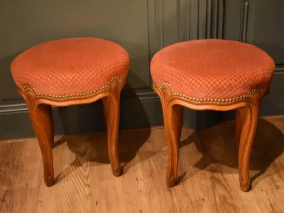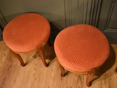 Paar krukken in Lodewijk XV-stijl. Bekleding in goede staat. Neem contact met ons op voor meer informatie en levering.