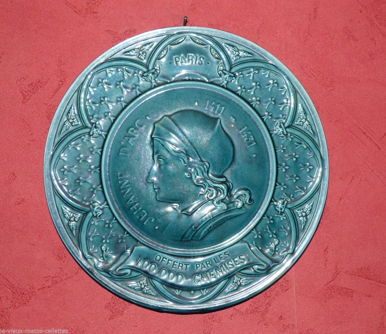 Assiette en barbotine offerte par les 100000 chemises à Paris signée de H.Mercier