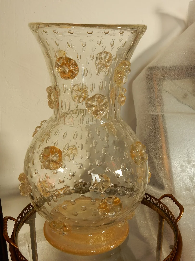 1970′ Barovier & Toso Style Murano Crystal Vase With Gold Flakes Unsigned