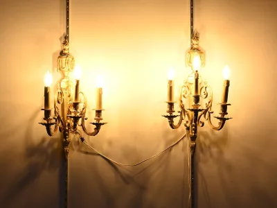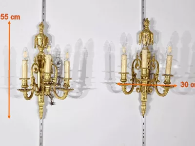 • ПАРА БРОНЗОВЫХ НАСТЕННЫХ СВЕТИЛЬНИКОВ В СТИЛЕ ЛЮДОВИКА XVI