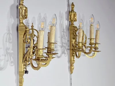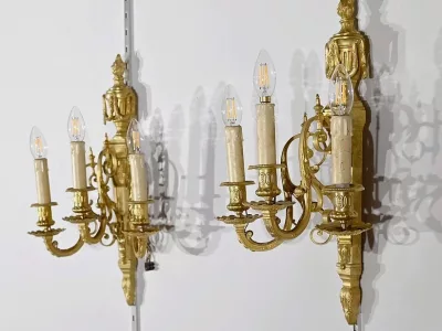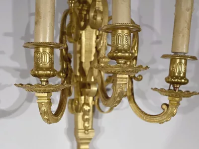 ПАРА БРОНЗОВЫХ НАСТЕННЫХ СВЕТИЛЬНИКОВ В СТИЛЕ ЛЮДОВИКА XVI