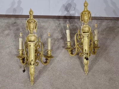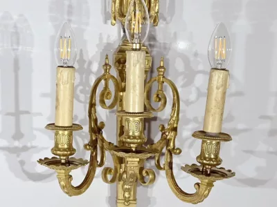 Пара настенных светильников в стиле Людовика XVI из бронзы. Новая проводка. Идеальное состояние. Свяжитесь с нами для доставки. Артикул: 011223.7
