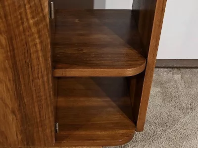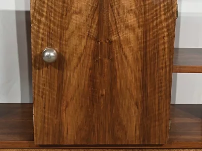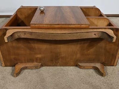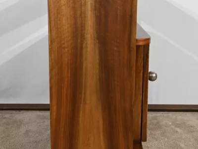 Приставной столик в стиле ар-деко из ореха и орехового шпона. Около 1940 года. Отреставрирован в нашей мастерской, в отличном состоянии. Покрыт воском. Артикул: 050324