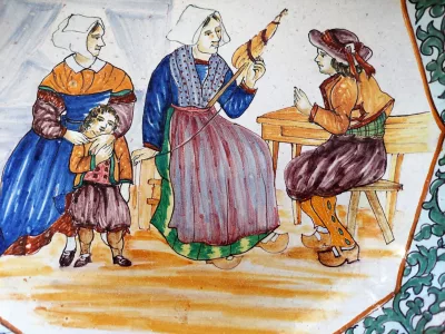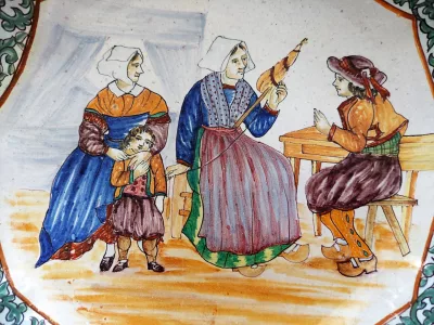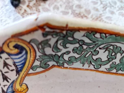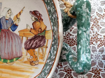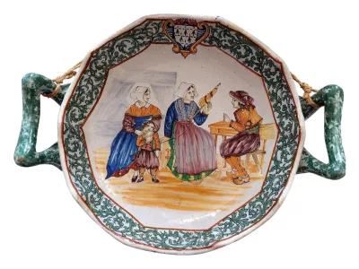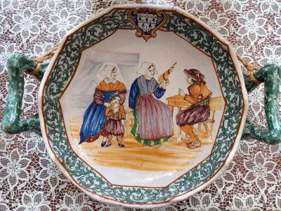 Фаянсовое блюдо с бретонским орнаментом, подписанное Маликорн Пуплар Беатрикс. Общее состояние хорошее: небольшой скол по краю - смотрите фото.