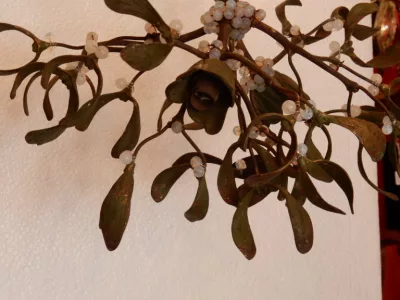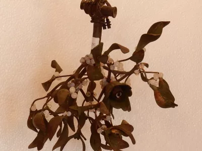 Art Nouveau Mistletoe Ball Chandelier with 4 Bulbs in Bronze and Opaline Beads