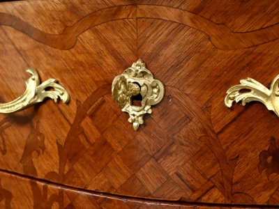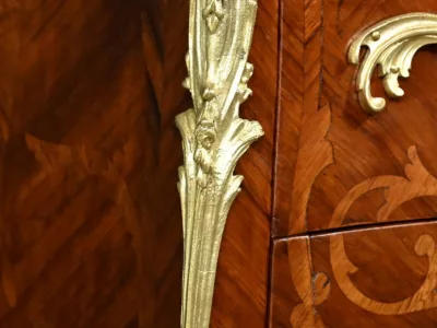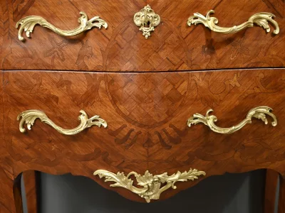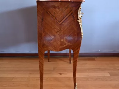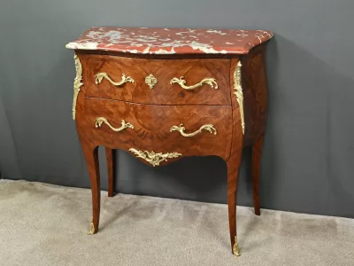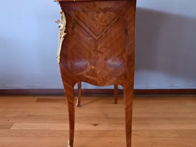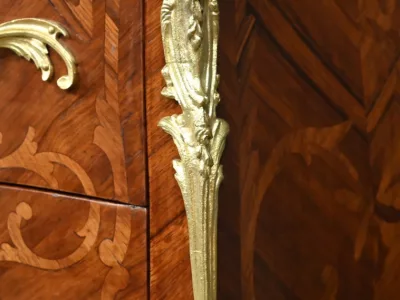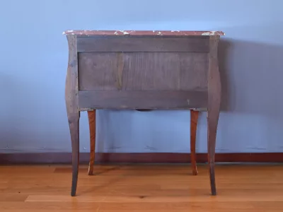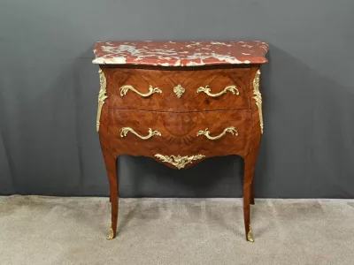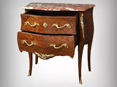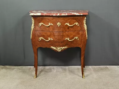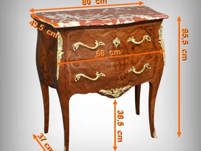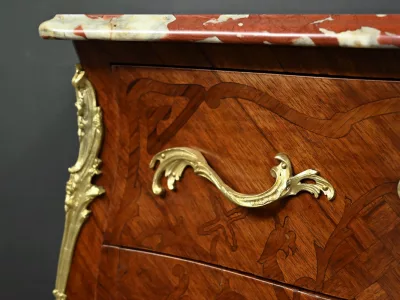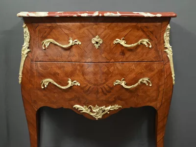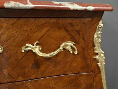Комод в стиле рокайль, XX век, Людовик XV, с инкрустацией и мраморной столешницей. Бронзовая отделка и ручки. Отреставрирован в нашей мастерской, в очень хорошем состоянии. Восковая отделка твердой поверхности. Свяжитесь с нами для организации доставки. Артикул: 191125