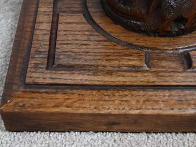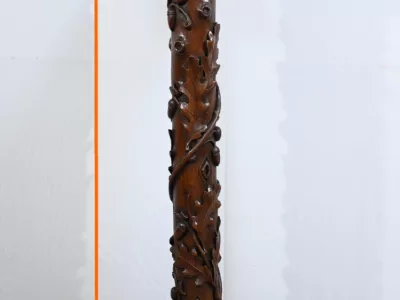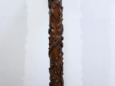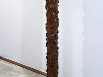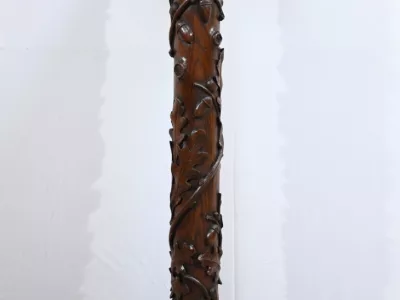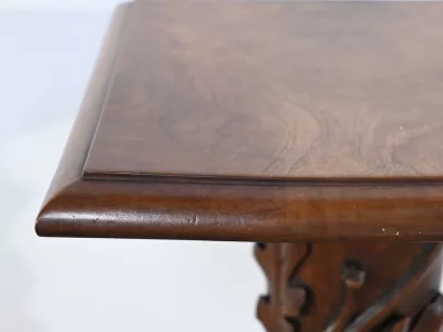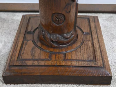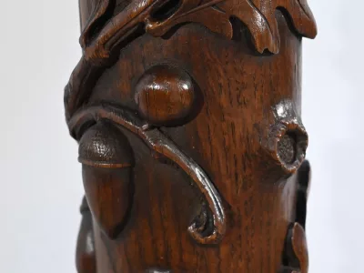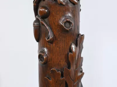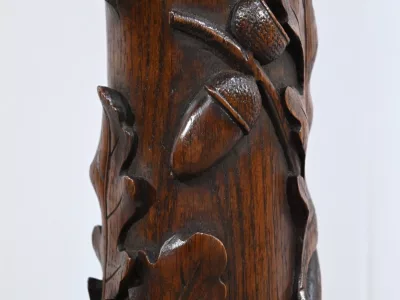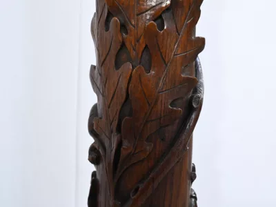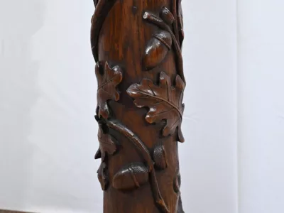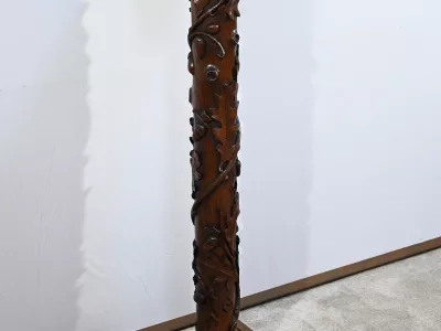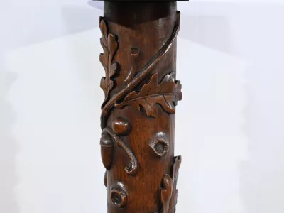 Колонна периода модерна из резного дуба со столешницей из орехового дерева. Около 1900 года. Состояние отличное. Восковая отделка. Свяжитесь с нами для доставки. Артикул: 220623.3
