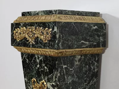 Конец 19 века, подставка в стиле Людовика XVI из мрамора цвета морской волны с бронзовым декором. Восстановлен в нашей мастерской и в отличном состоянии. Свяжитесь с нами для доставки. Вес: 90 кг. Артикул: 384 Т