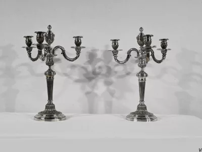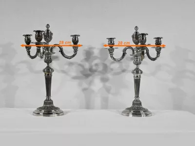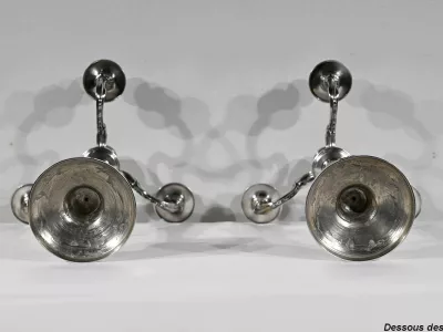 Пара канделябров из посеребренной бронзы. Конец девятнадцатого века. Отличные условия. Свяжитесь с нами для доставки. Артикул: 425 У