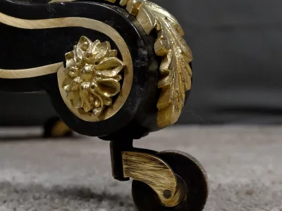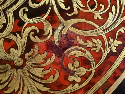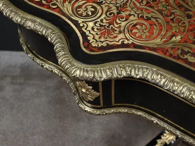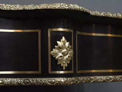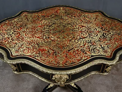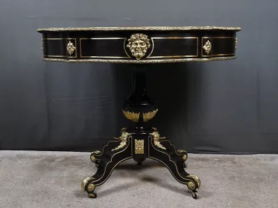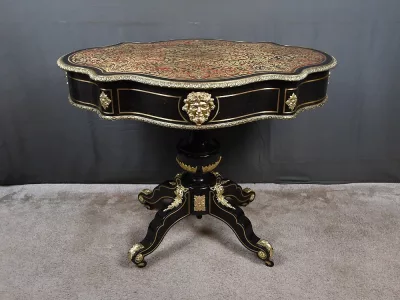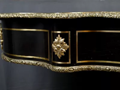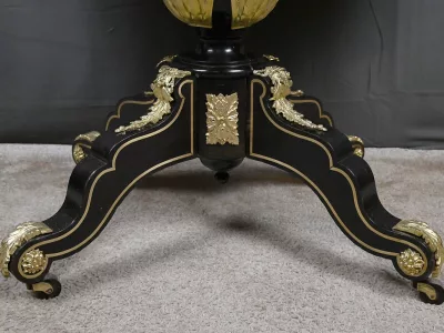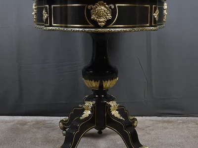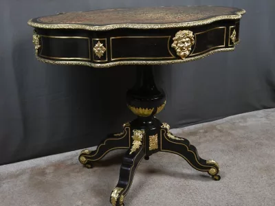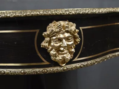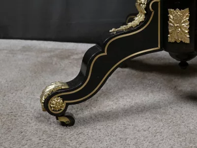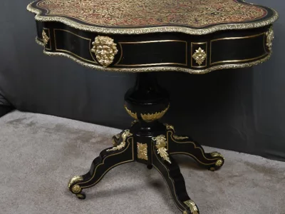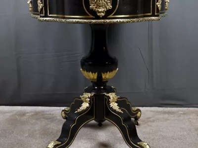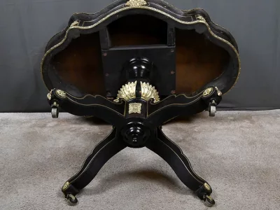 Столик в форме скрипки эпохи Наполеона III, выполненный из черного фруктового дерева с инкрустацией в стиле Булля из латуни и черепаховой скорлупы. Бронзовая отделка. Отреставрирован в нашей мастерской и находится в очень хорошем состоянии. Свяжитесь с нами для организации доставки. Артикул: 429 V