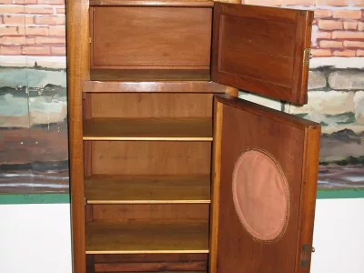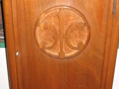 Очаровательный маленький шкаф «TSF» А. массивные блонд красного дерева лет 1940/1950. Он открывает двери 2 спереди и выше перекладины. Интерьер выстлан 3 полков. Идеальное состояние. Патина воском.