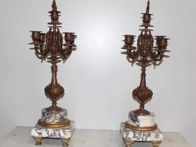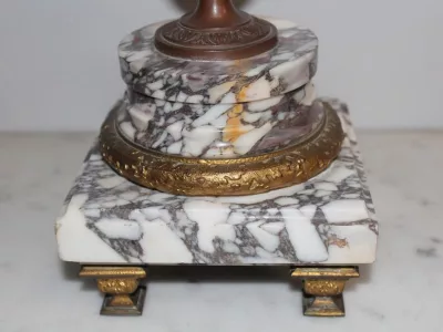 Пара канделябров начала 20-го века из спелтера и мрамора. Около 1920 года. Очень хорошее состояние. Соответствующие часы также доступны. Ссылка: 635 К