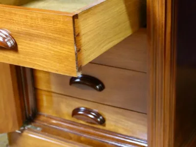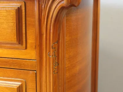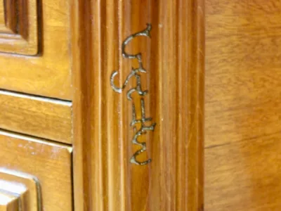 Письменный стол в стиле модерн с подписью Галле (Эмиль Галле, 1846–1904). Выполнен по всем четырём сторонам. Пять ящиков и дверца, скрывающая ещё шесть ящиков. Состояние отличное.
