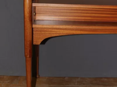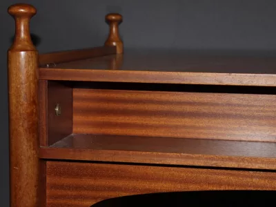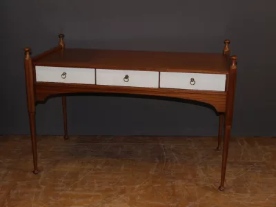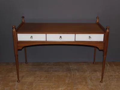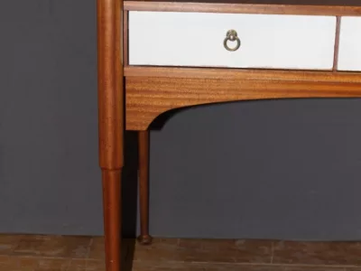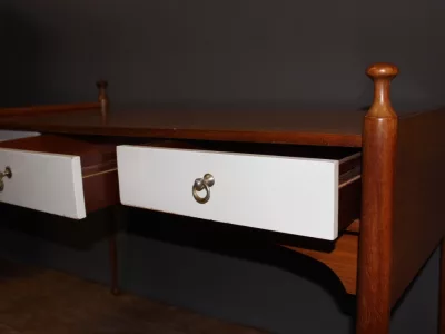 Письменный стол 1960-х годов из красного дерева с тремя белыми ящиками от Maison Gauthier. Отсек сзади. Хорошее состояние.