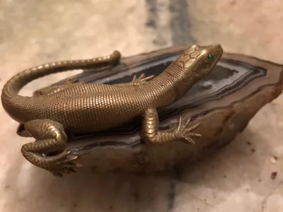 Привлекательная бронзовая скульптура 19 века из ящерицы на кварцевой основе.